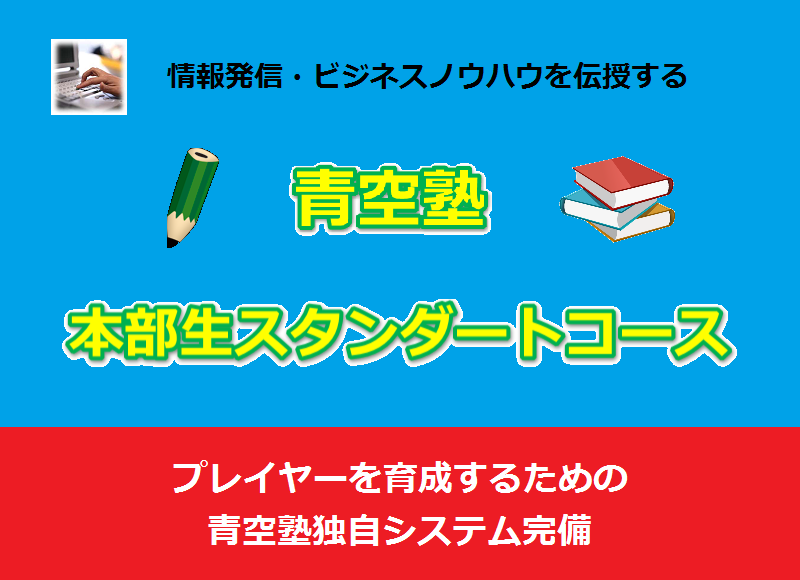 こんにちは、私は切り開く青空人と申します。 私はネットコンサルタントを行なっていまして、 この一環として、プレーヤーを育成するために快適な実践環境を整えるべく 青空塾を運営しております。 |