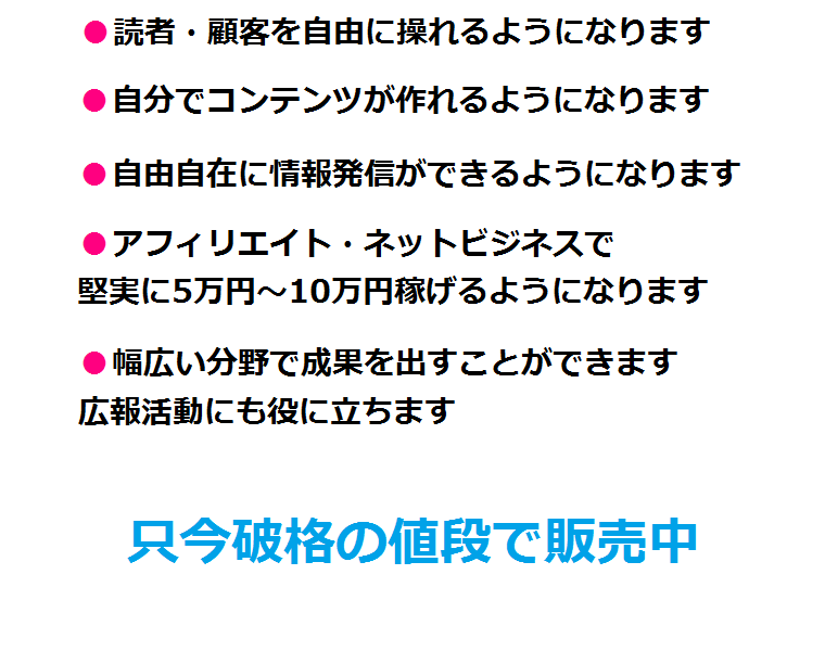 ⇒商材タイトル通り、総合的に情報発信に必要なノウハウが学べます。